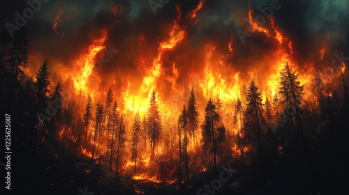 wildfire, forest fire, fire, forest, burning, flames, night, orange, glow, disaster, destruction, heat, smoke, inferno, danger, emergency, natural disaster, climate change, global warming, deforestation, loss, environment, ecology, tree, blaze, drought, air pollution, devastation, apocalypse, hell, scarey, intense, dramatic, power, energy, nature, landscape, dark, burnt, ash, ember, wildlife, firefighting, prevention