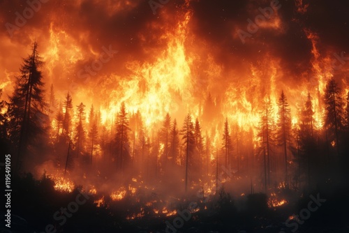 wildfire, forest, fire, burning, tree, flames, heat, smoke, destruction, disaster, inferno, danger, dry, season, climate, change, global, warming, natural, emergency, environment, ecology, deforestation, loss, damage, orange, red, hot, blaze, bushfire, conflagration, drought, arid, timberland, nature, power, energy, environmental, effect, extreme, weather, wave, coniferous