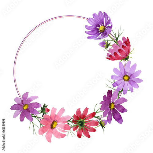 Wildflower kosmeya flower frame in a watercolor style isolated.
