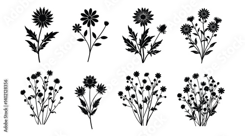 Wildflower Whispers Bundles Vector Silhouette | Delicate Floral Clipart, Meadow Flower Designs, Botanical Line Art, Rustic Nature Illustrations, Hand-Drawn Wildflowers and Boho Floral Elements for Cre