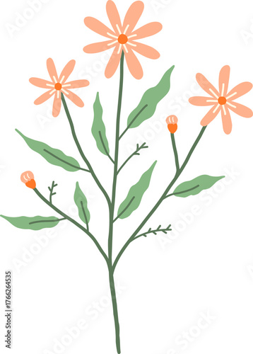 Wildflower with small orange daisy Illustration Flat Minimalist Style