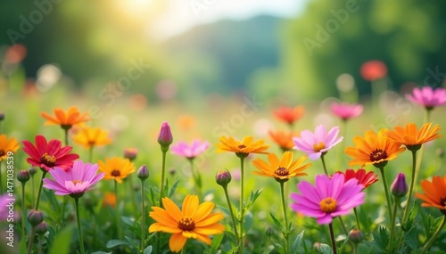 Wildflowers blooming in a vibrant meadow, showcasing natural beauty , field, delicate