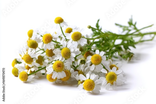 Wildflowers display with vibrant yellow centers and delicate white petals arranged artistically on a plain background