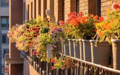 wildflower, flower, pot, balcony, building, city, apartment, house, plant, garden, flower, nature, wall, fence, leaf, bloom, blossom, window, home, gardening, decoration, green, environmentally friendly, ecology, apply, ai, generative