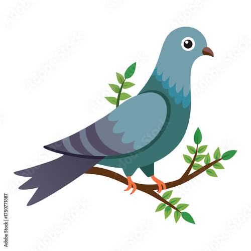 pigeon, bird, tree branch, leaf, tree branch, nature, isolated on white, foliage, green leaf