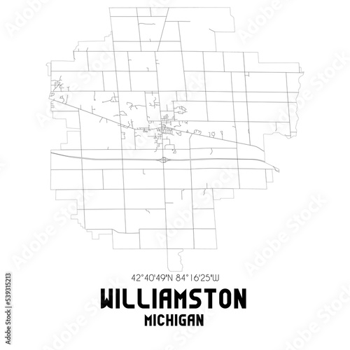 Williamston Michigan. US street map with black and white lines.
