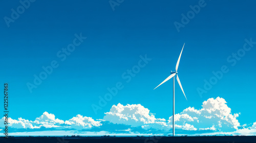 Wind turbine stands tall against a bright blue sky with fluffy white clouds during daylight