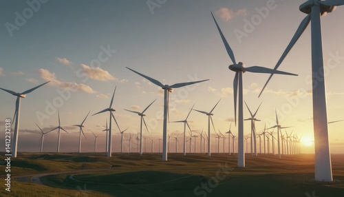 wind, sunset, renewable, energy, farm, sky, landscape, power, nature, electricity, eco, sustainable, generator, environment, cloud, clean, technology, horizon, evening, green, scenic, alternative, silhouette, modern, sun, dusk, countryside, infrastructure, windmill, weather, rural, twilight, industry, orange, scenic view, rotating, peaceful, innovation, sustainability, glow, meadow, ecology, efficiency, power plant, renewable energy, clean energy
