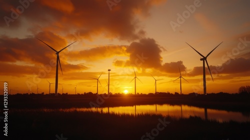 sunset, wind, energy, renewable, power, sustainable, environment, landscape, nature, water, sky, cloud, orange, silhouette, dusk, evening, clean, electricity, climate, generation, alternative, farm, field, rural, green, technology, innovation, engineering, industrial, windmill, development, eco, friendly, resource, conservation, planet, future, electric, efficiency