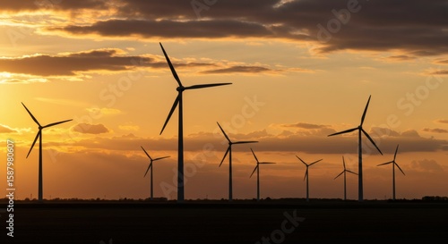 Wind Turbines at Sunset Representing Peaceful Sustainable Energy