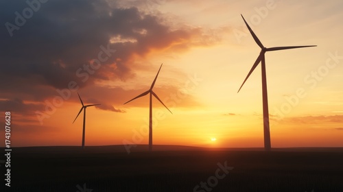 Wind turbines generating clean energy at sunset renewable energy landscape nature photography serene environment aesthetic viewpoint