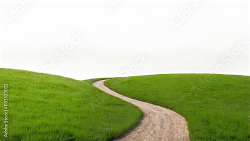 Winding dirt road through grassy field under a cloudy sky transparent background