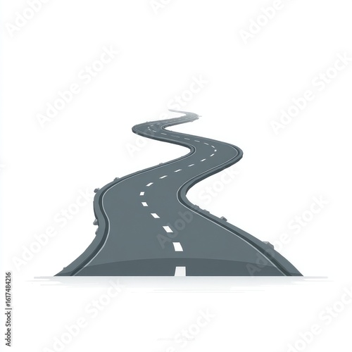 road, winding, path, journey, asphalt, curve, way, travel, destination, direction, future, progress, trip, adventure, perspective, elevation, view, pavement, illustration, graphic, vector, design, abstract, simple, smooth, grey, white, line, marking, surface, leading, horizon, tunnel, roadway, isolated, cartographic