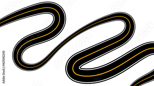 Winding road. Journey traffic curved highway. Background of the road to the horizon in perspective. Curvy asphalt empty line isolated. Vector winding road isolated on transparent back