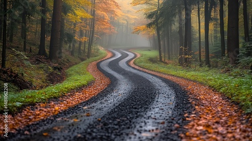 road, forest, autumn, tree, leaf, winding, path, nature, scenic, misty, fog, fall, colours, curve, gravel, wet, landscape, travel, drive, hiking, explore, beauty, foggy, walking, adventure, peaceful, serene, tranquil, amazing, charming, gorgeous, photo, image, photo, october, november, foliage