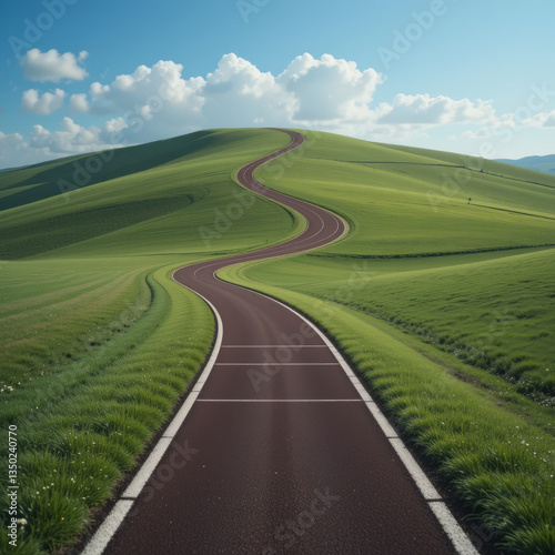 road, hill, green, landscape, nature, sky, winding, calmness, scenery, travel, pathway, summer, beautiful, countryside, vibrant, peaceful, sunlight, curve, horizon, rural, environment, scenic, meandering, fresh, grass, blue, cloud, open, journey, freedom, idylli, bright, sunny, picturesque, natural, serene, rolling, view, exploration