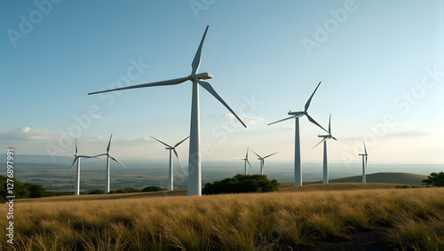 Windmill Farm Generating Renewable Energy in Rural Landscape