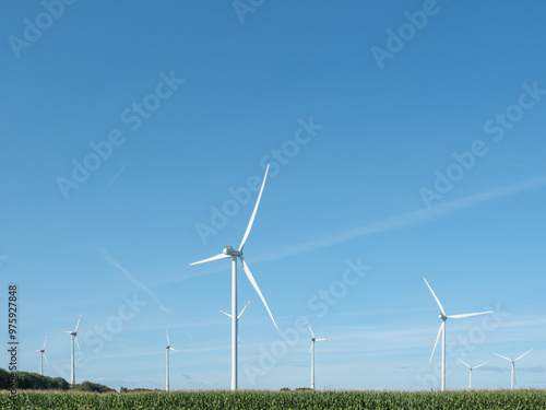 milieu, mais, wind, energy, power, turbine, electricity, windmill, sky, generator, alternative, environment, field, green, blue, wind turbine, ecology, landscape, environmental, nature, electric, industry, technology, generation