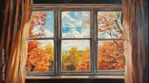 Window view painting Landscape Interior Window frame wallpaper background