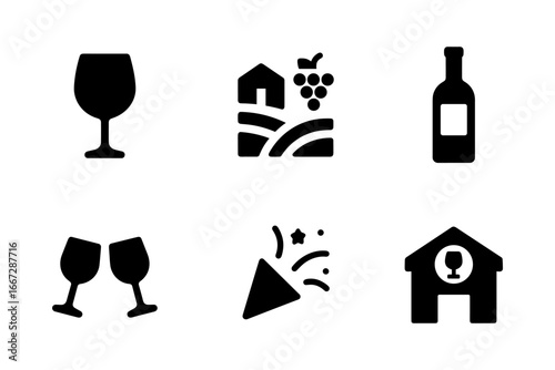 silhouette, wine, vinery, glasses, bottle, party, celebration, farmhouse, grape, toast, drink, alcohol, beverage, harvest, winery, cheer, festive, icon, signs, minimal, black, white, simple, rustic, event, decor, classic, elegant, art, collection