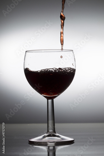 wine glass, wine glass, glasses, dinnerware, wine bottle, alcohol, drinking, water, drink, juice, fresh, wet, pour, fall, flowing, splash, shadow, gradient, halftone, spotlight, freezing, dynamic, movement, food, blue, grey, white, red, burgundy, black, transparent, macro