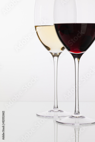 Wineglass with red and white wine