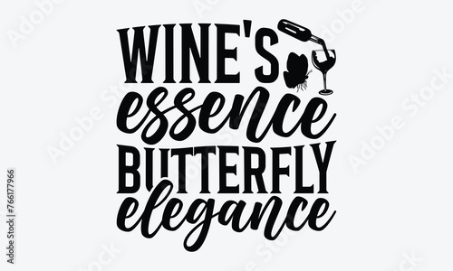 Wine's Essence Butterfly Elegance - Wine And Butterfly T-Shirt Design, Hand Drawn Lettering Typography Quotes, Inspirational Calligraphy Decorations, For Templates, Wall, And Flyer.