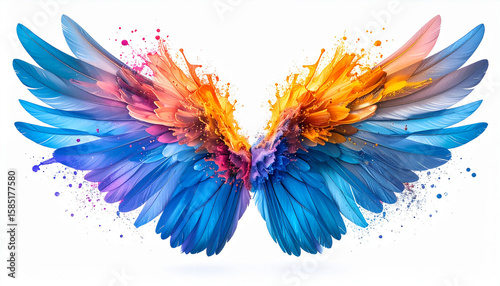 wing, imagination, fantasy, dream, freedom, colourful, vibrant, art, creativity, artistic, rainbow, abstract, surreal, inspiration, flight, soaring, angelic, magical, celestial, aethereal, design, illustration, concept, symbol, emblem, pattern, graphic, rainbow colours, decoration, artwork, plumage, bird, open, fly, spirit, aspire