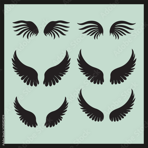 bird, wing, vector, eagle, wing, silhouette, tattoo, illustration, feather, animal, flying, angel, black, icon, set, symbol, hawk, design, tribal, dove, nature, fly, freedom, signs, art
