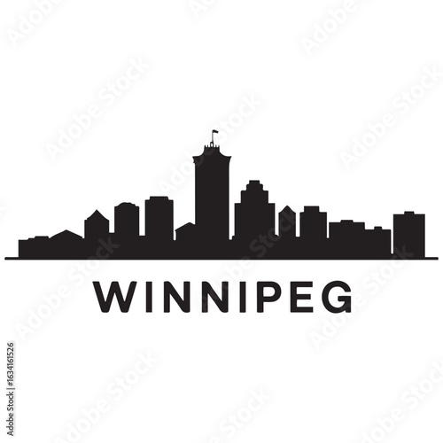 Winnipeg skyline silhouette. Black Winnipeg city. Vector black silhouette. with white background.