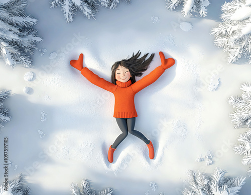 girl, winter, snow, fun, happy, children, playful, joyful, smiling, christmas, holiday, season, winter landscape, nature, cold, snowdrift, coniferous, forest, landscape, happy child, illustration, cartoon, cute, adorable, festive, cheerful, carefree, freedom, peace, serenity, calmness, happiness, positive, energy, children, winter scene