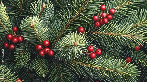 evergreen, berry, winter, branch, red berry, conifer, holiday, festive, green, nature, christmas, decoration, botany, plant, shrub, needle, sprig, holly, forest, flora, botanical, winter scene, pine, spruce, fir, cedar, juniper, yew, seasonal, background, texture, design, art, painting, illustration, image, graphic, visual, pattern, ornament, winterly, festive season, holiday season, natural, organic, rustic, elegant, simple, classic