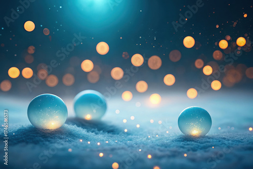Winter Bokeh Background Snow Covered Ground Blue Glass Orbs Golden Lights Defocused