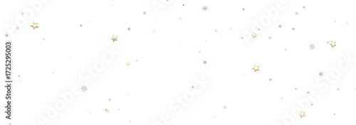 Winter holiday background with gold stars and silver snowflakes. Perfect for Christmas cards, websites, and more!