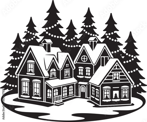 Winter Holiday Cottage Vector Art