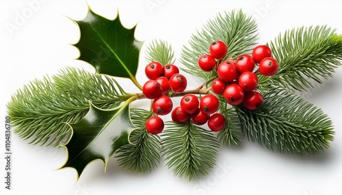 Winter Holly Branch with Berry isolated white background