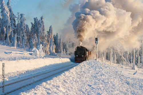 resin, german, winter, snowscape, forest, countryside, steam locomotive, train, means of transportation, journey, sunset, winter landscape, hike, cold, frost, glacé, season, tree, hike, recreation, vacation, recreation, snowy, bough, man, photograph, run, underway, people, white, fir, drive