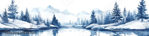 winter, landscape, duck pond, mountain, tree, snow, glacé, calm, misty, blue, watercolor, nature, serenity, forest, still, water, snowy, cold, peaceful, scenic, tranquil, silent, wintery, ice, frigid, alpine, evergreen, pine, coniferous, quiet, majestic