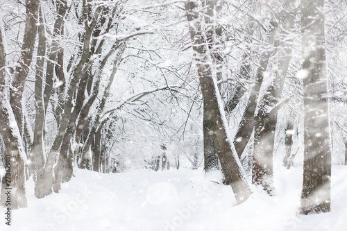 Winter landscape. Forest under the snow. Winter in the park.