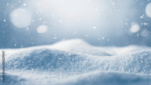 Winter landscape with falling snowflakes and snow drifts. Christmas background with copy space