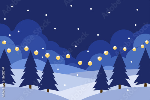 christmas, winter, tree, snow, holiday, illustration, christmas, night, vector, landscape, celebration, star, snowflake, season, card, cold, blue, design, fir, new, sky, greeting, decoration, snowy, christmas tree