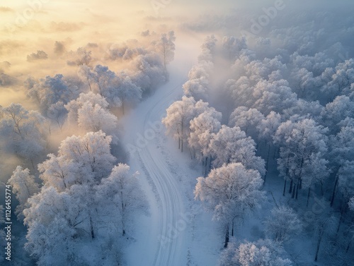 winter, snow, tree, landscape, frost, road, nature, aerial, scenery, cold, fog, outdoors, seasonal, tranquil, serene, environment, wilderness, beautiful, scenic, peaceful