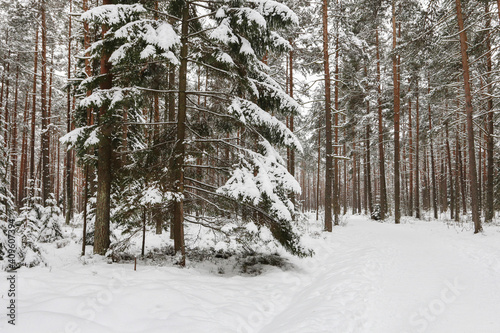 Winter morning in the forest.