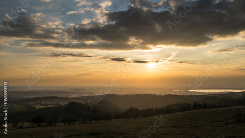 Winter scenery at sunset around the village of Sendraž, Czech Republic