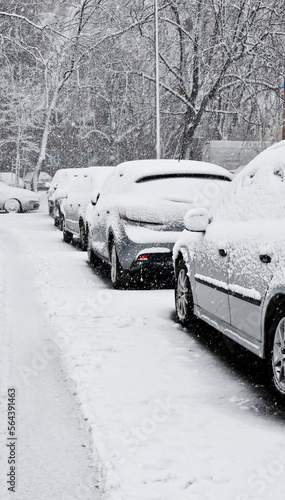 winter snow car, blizzard in the parking lot near the apartment building in winter . snow in the city. street in the snow