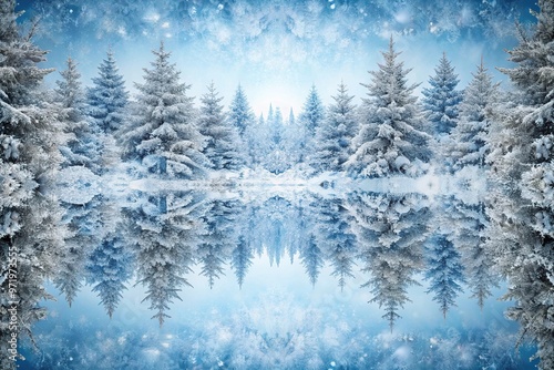 Winter snow-covered props set against a symmetrical snowy background