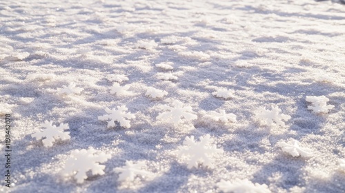 Winter Wonderland: A Close-Up View of Delicate Snowflakes on a Snowy Surface