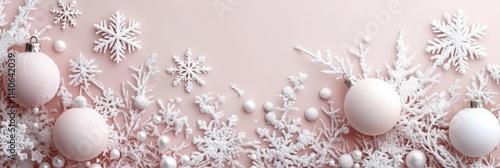 winter, christmas, ornament, snowflake, pearl, pink, white, holiday, decor, background, festive, elegant, serene, celebration, pure, joy, pastel, winter landscape, holiday season, christmas decoration, beautiful, delicate, subtile, calm, peaceful, pretty, sparkly, shiny, romantic, seasonal, greeting, card, design, texture, pattern, style, image, art, illustration, aesthetic, minimalist, simple, celebratory
