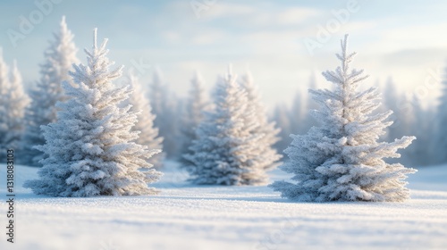 Winter wonderland snow-covered pine trees in a serene landscape