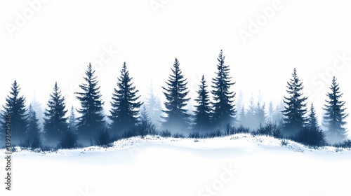 forest, tree, silhouette, snow, landscape, winter, nature, timberland, evergreen, frost, calm, tranquil, background, pine, scenery, natural, environment, seasonal, artistic, silhouetted, horizon, isolated, field, white, simple, minimalistic, peaceful, gradient, brushstroke, watercolor, minimalism, outdoors, idylli, blue, atmospheric, calmness, snowy, misty, subtile, naturalism, tone, wilderness, scenic, vista, vacation